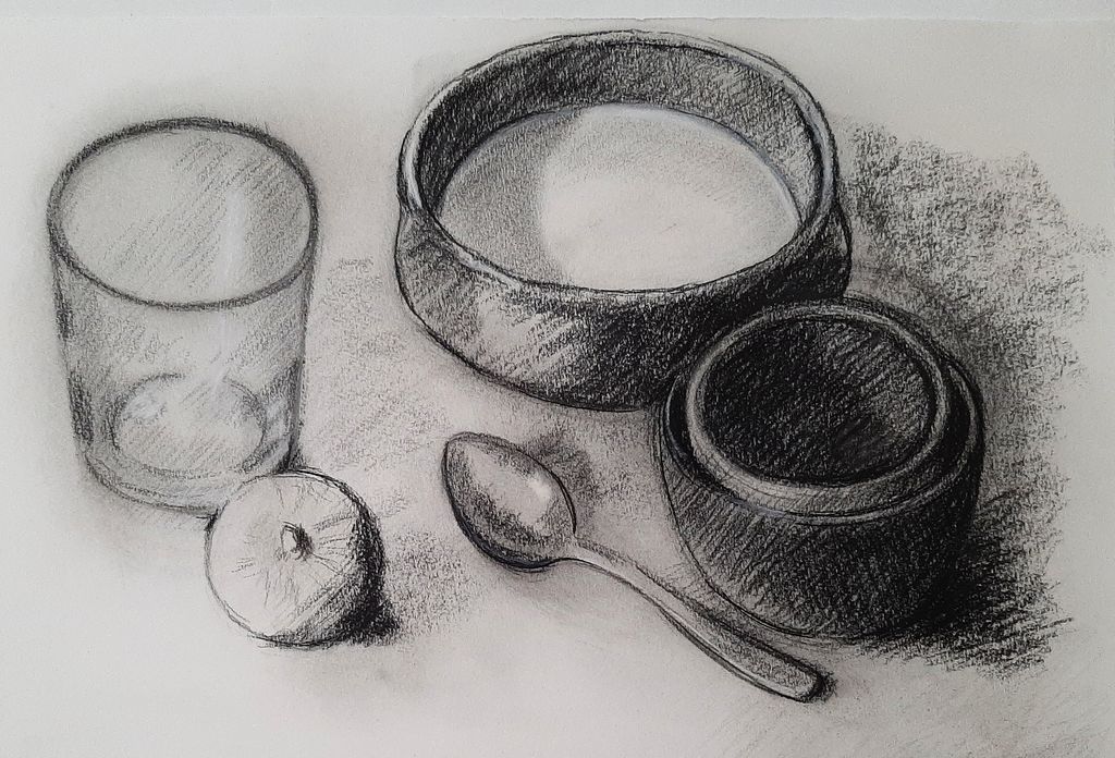 Alle diese Themen können uns beschäftigen, wenn wir ein Stillleben kreieren und malen wollen. Am Anfang steht die Wahrnehmung: Wie sehe ich Gegenstände als Form im Raum? Sie können arrangiert oder ganz zufällig durch ihren Gebrauch miteinander in Verbindung geraten sein. Aus welchem Material bestehen sie? Welche Veränderungen nehme ich wahr, wenn sich der Blickwinkel, das Licht oder die Gruppierung verändert? Mit dem Betrachten und Begreifen kommt das Verständnis für Spannung, Harmonie und räumliche Zusammenhänge.