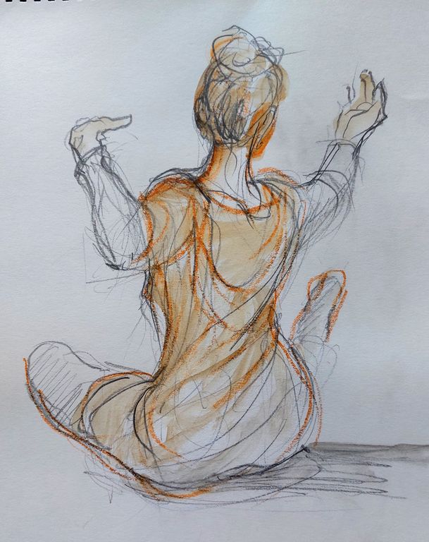 Wir wollen auf verschiedenen Wegen versuchen, das Wesen der Bewegung zu erfassen und die räumlichen Eindrücke mit Kreide, Rohrfeder und Pinsel auf der zweidimensionalen Mal- und Zeichenfläche festzuhalten, wobei der Bogen von der naturalistischen bis zur abstrakten Darstellung reicht.