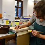 Zudem besteht das Angebot zum Erproben diverser Gestaltungs- und Dekortechniken, welche auf kleinen Plaketten angefertigt werden und so das individuelle Portfolio der Teilnehmer erweitern.